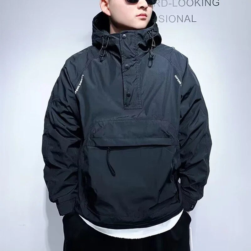PLUS LOFTS Spring And Autumn Men's Pocket Jackets Hoodie Hip Hop Harajuku Streetwear Fashion Casual Jacket Half-zip Male Loose Coats Top